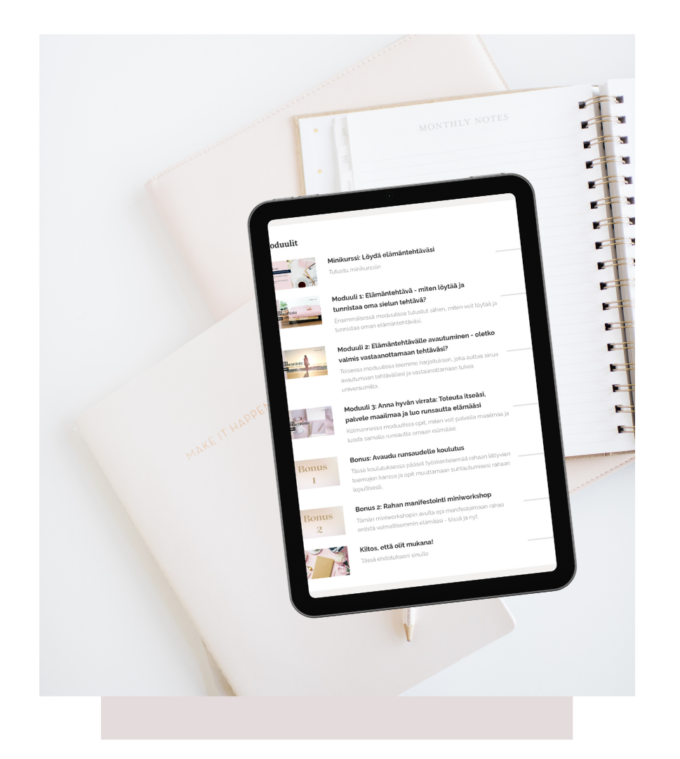 Tässä sähköpostisarjassa saat tietää, mistä sinun kannattaa todella aloittaa muutoksen tekeminen, jos haluat *löytää vihdoinkin sielusi tehtävän ja enemmän vapautta elämääsi*.
